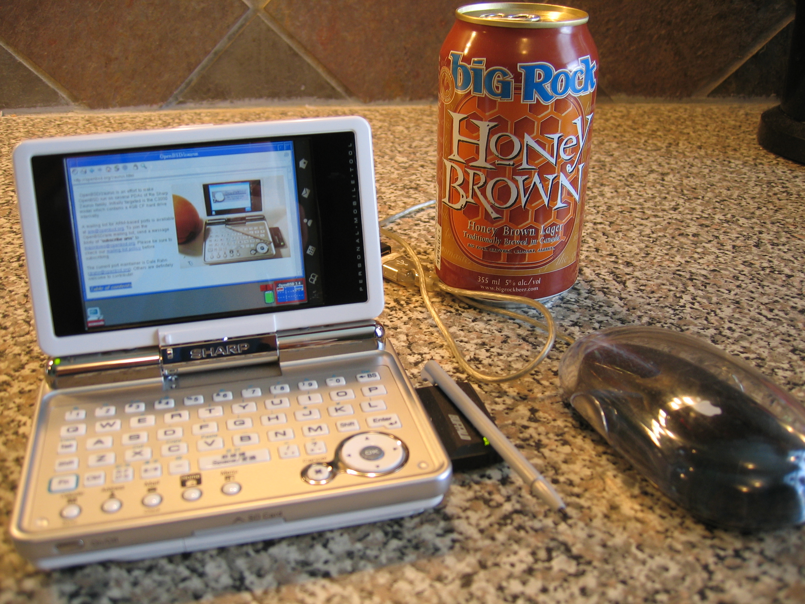 Hardware support is mostly complete and quite stable. The Zaurus boots multiuser and X11 runs. Most PCMCIA/CF devices work (such as wireless/ethernet cards), as well as host USB, SD/MMC memory cards and the keyboard and touch screen are supported by X11. Audio playback is working, and the machine is of course able to suspend much like a regular laptop. Even the processor performance mode can be adjusted with apmd(8), just like on other platforms.